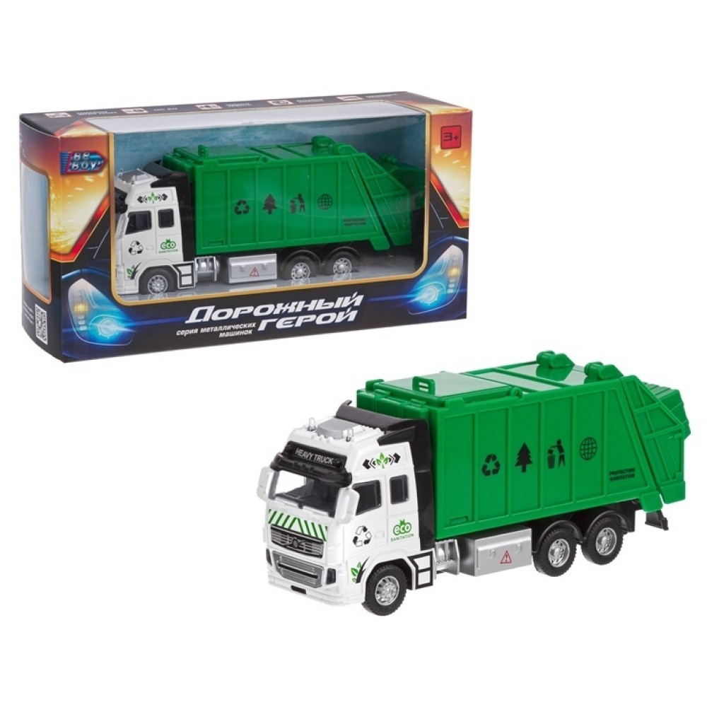 BeBoy. Машинка инерционная "Мусоровоз" (металл.) подв. эл, свет, звук, резин. покрышки, арт.IT107380