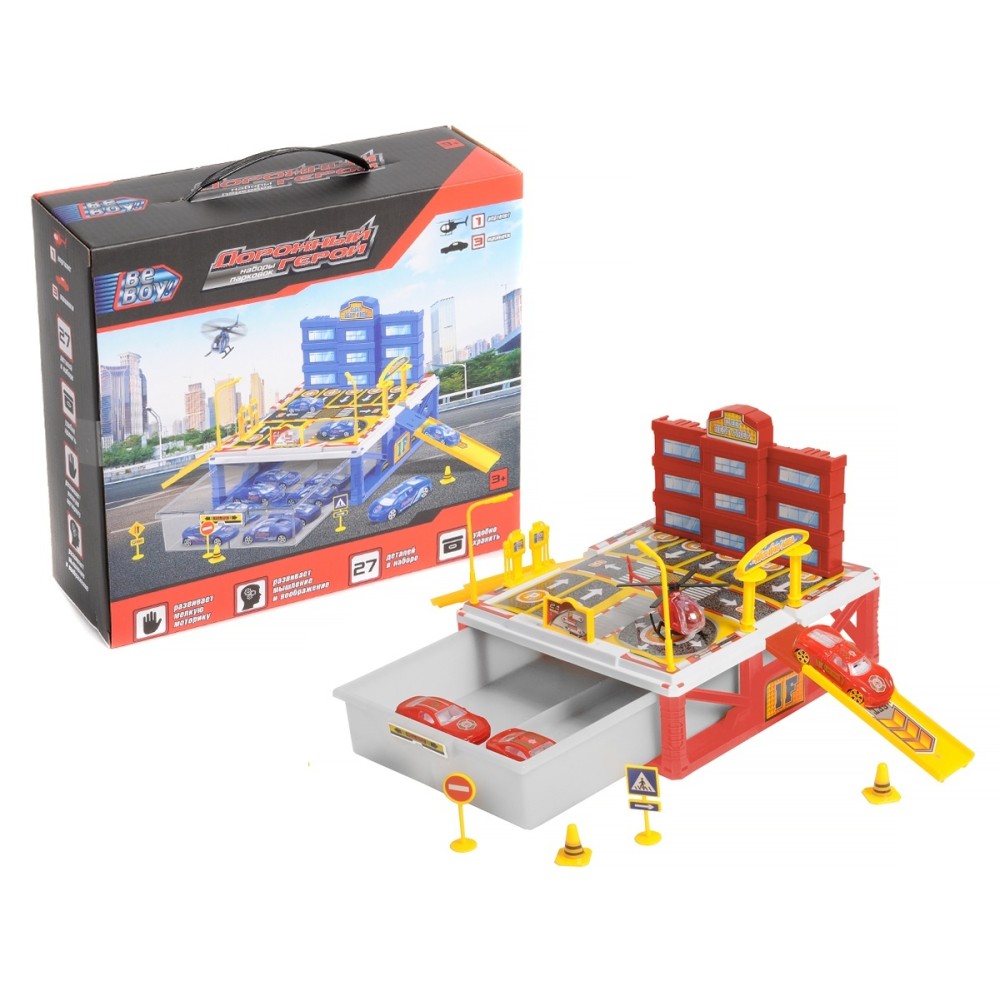 Beboy. Набор "Паркинг-Пожарный" 27 дет. 2в1 парковка и ящик для хранения машин +1 верт. арт.IT106380
