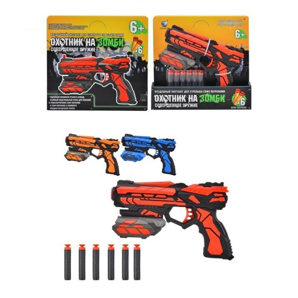 Бластер стреляющий мягкими патронами "Охотник на зомби" 6 софт-патронов, в/к арт.T522-D6350