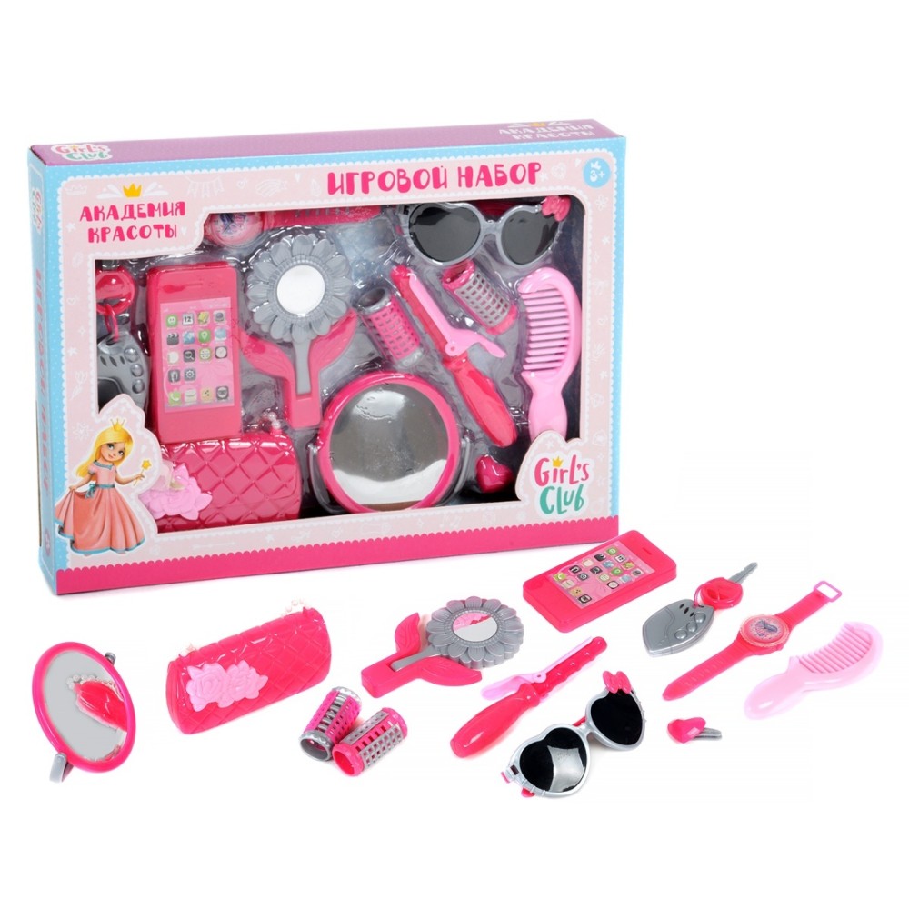 Girl's club. Набор "Модница" (ключи с брелк, телеф, сумочка, зеркало, часы,плойка,очки) арт.IT105220