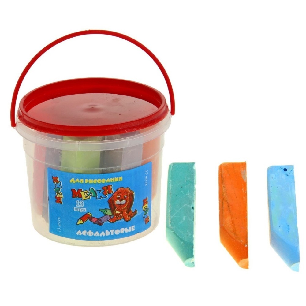 Мелки асфальтовые в ведёрке цветные 13 штук, 9*9*8 см арт.KBP Aсф 13ЦВ