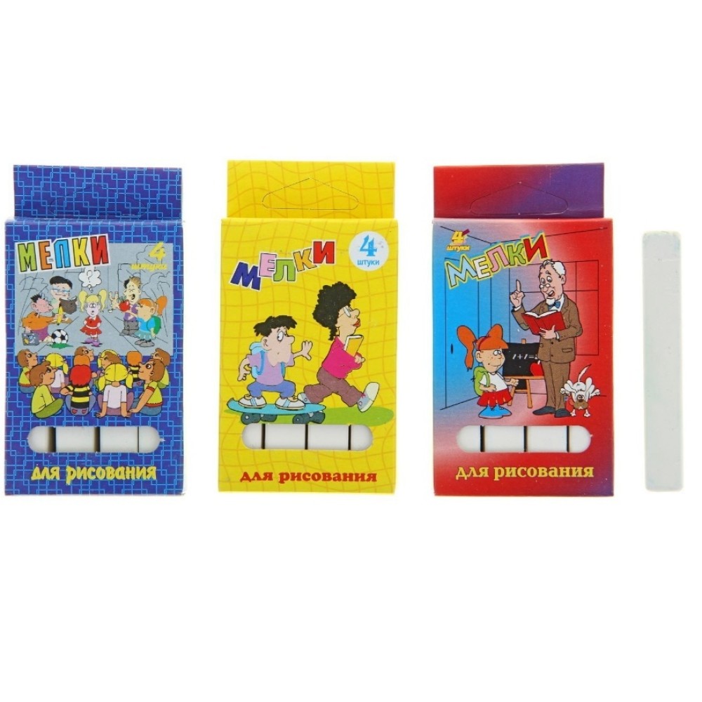 Мелки школьные белые 4 штуки, 6*10*2 см арт.КВР 04Б