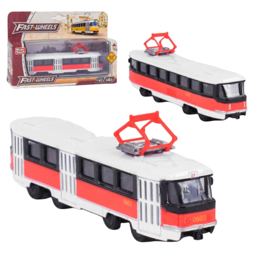 Play Smart. Трамвай метал. инерц. М1:54 19,5*5*8 см в кор. (цв. красный) арт.6411D/DT