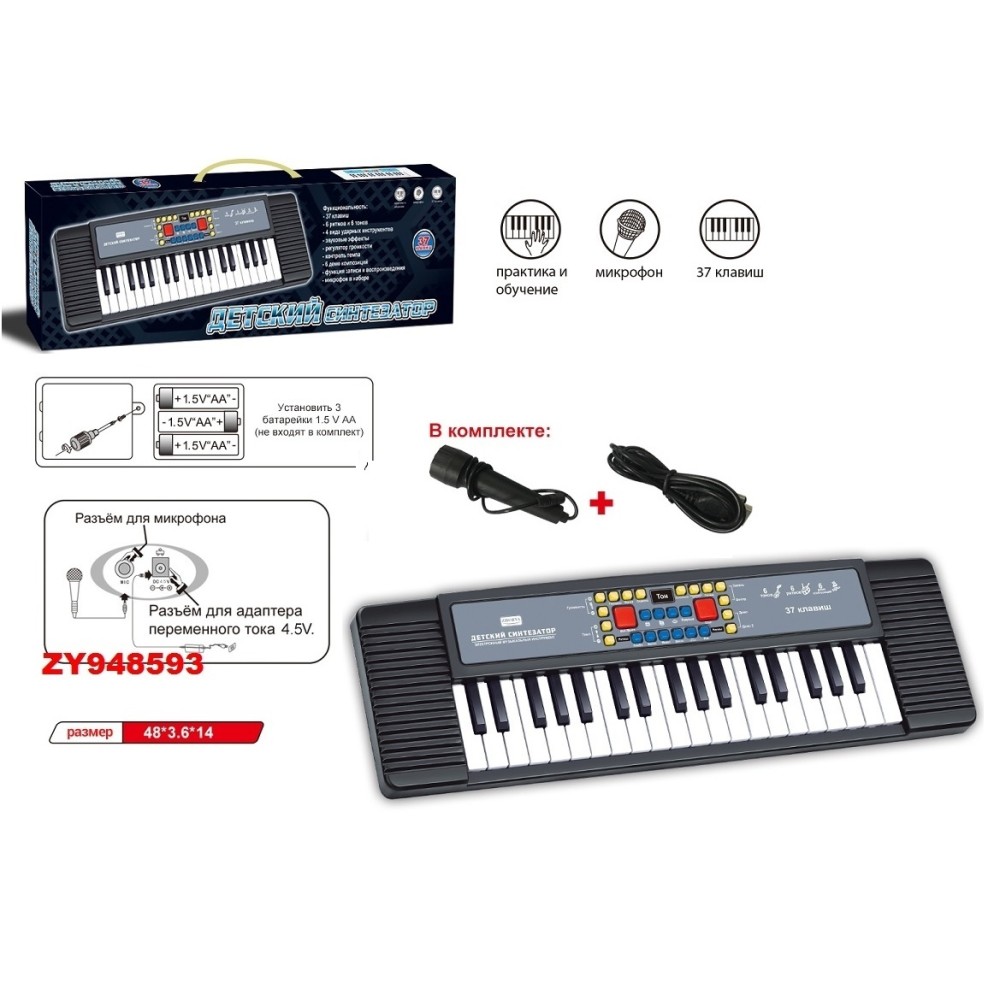 Синтезатор "Zhorya" на бат. с микрофоном 37 клавиш, в/к 52,5*4,5*15 см. арт.ZY948593