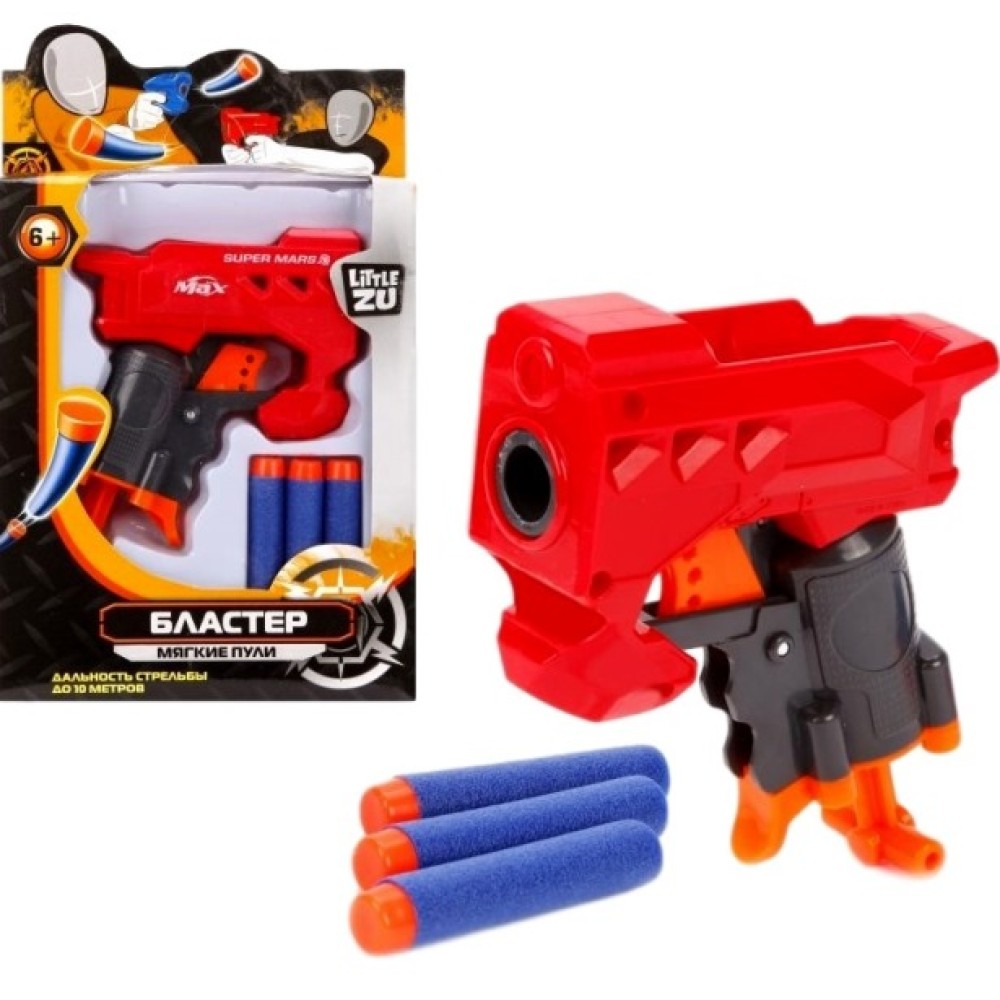 Бластер, 3 м/пули. Мягкие пули. Дальность стрельбы 10м. арт.90068