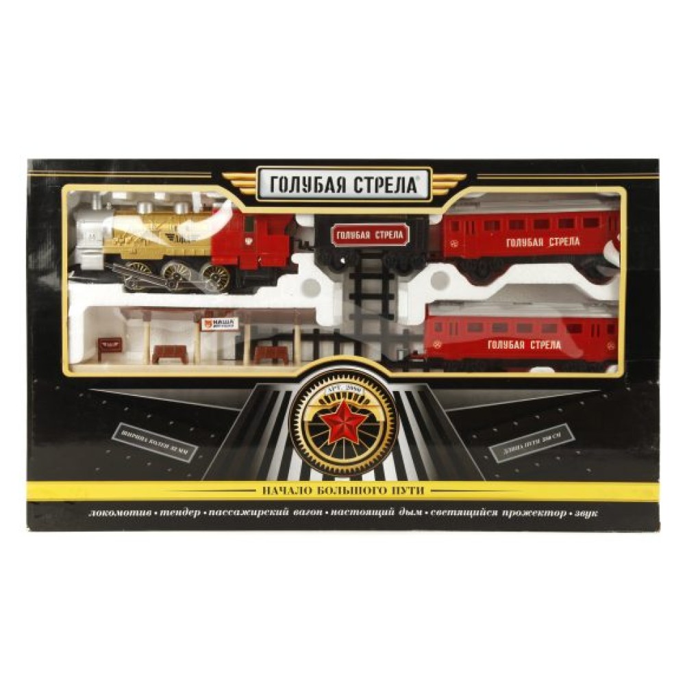 Голубая стрела. Железная дорога арт.2090/94381 "Начало нового пути" 580см, (лок. вагон, свет, дым)