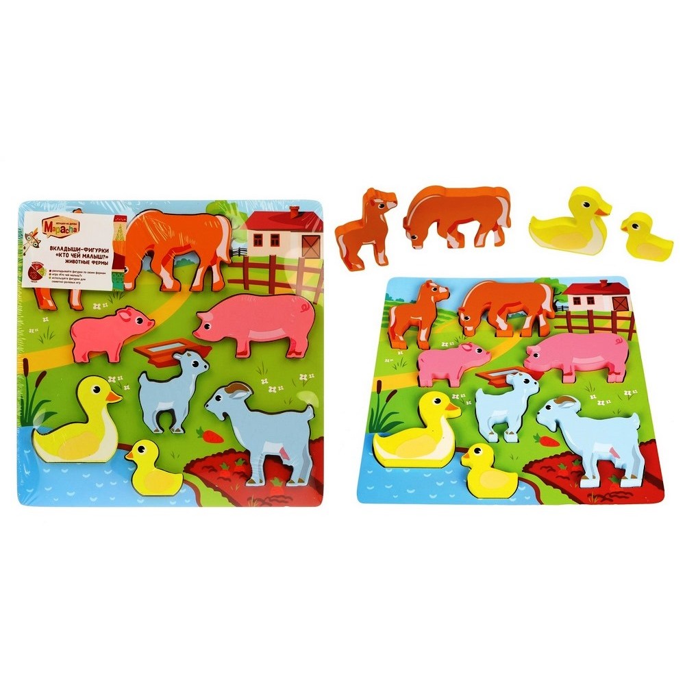 MAPACHA. 76798 Вкладыши-фигурки "Кто чей малыш. Животные фермы" 8 эл, 20 см