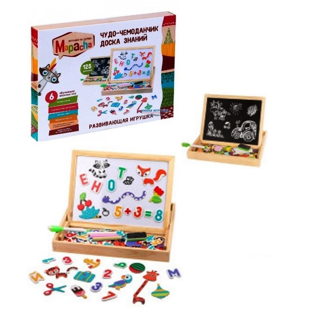 MAPACHA. 76800 Чудо-чемоданчик "Доска знаний": магнитно-грифельная доска, фигурки на магнитах 123 шт