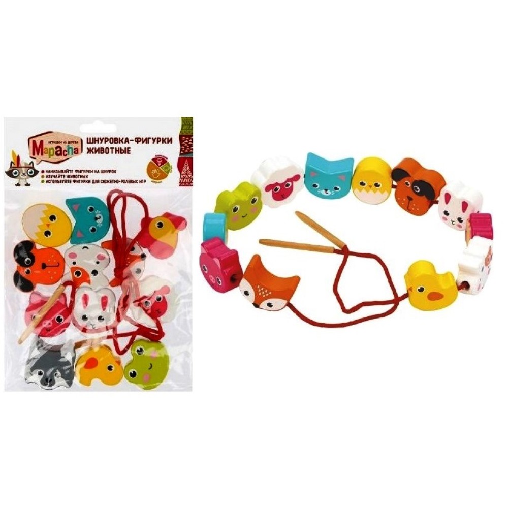MAPACHA. 76804 Шнуровка-фигурки "Животные": 12 дет 3-4 см, шнурок