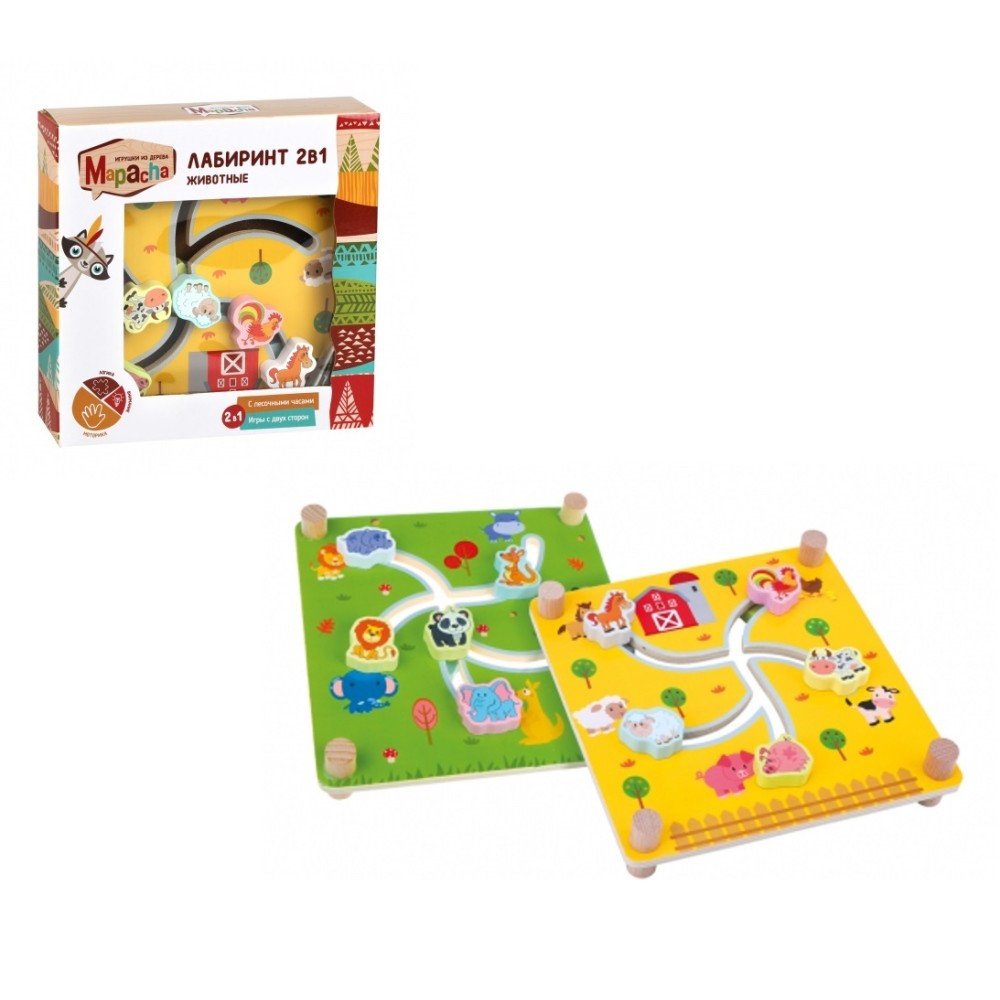 MAPACHA. 76820 Лабиринт двухсторонний 2в1 "Животные" с песочными часами, 23х5х23 см