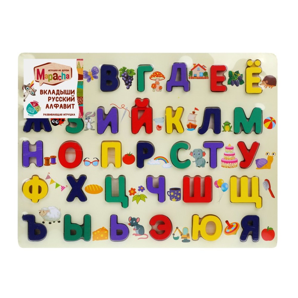 MAPACHA. 76827 Вкладыши "Русский алфавит" с рисунками-подсказками: 33 буквы, 39х30 см