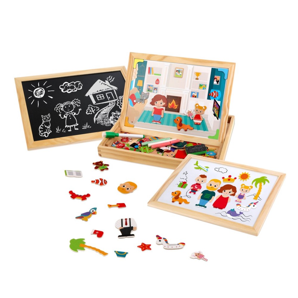 MAPACHA. 76840 Бизи-чемоданчик "Дружная семья" (доска для рисов. меловая доска, фигурки на магнитах)