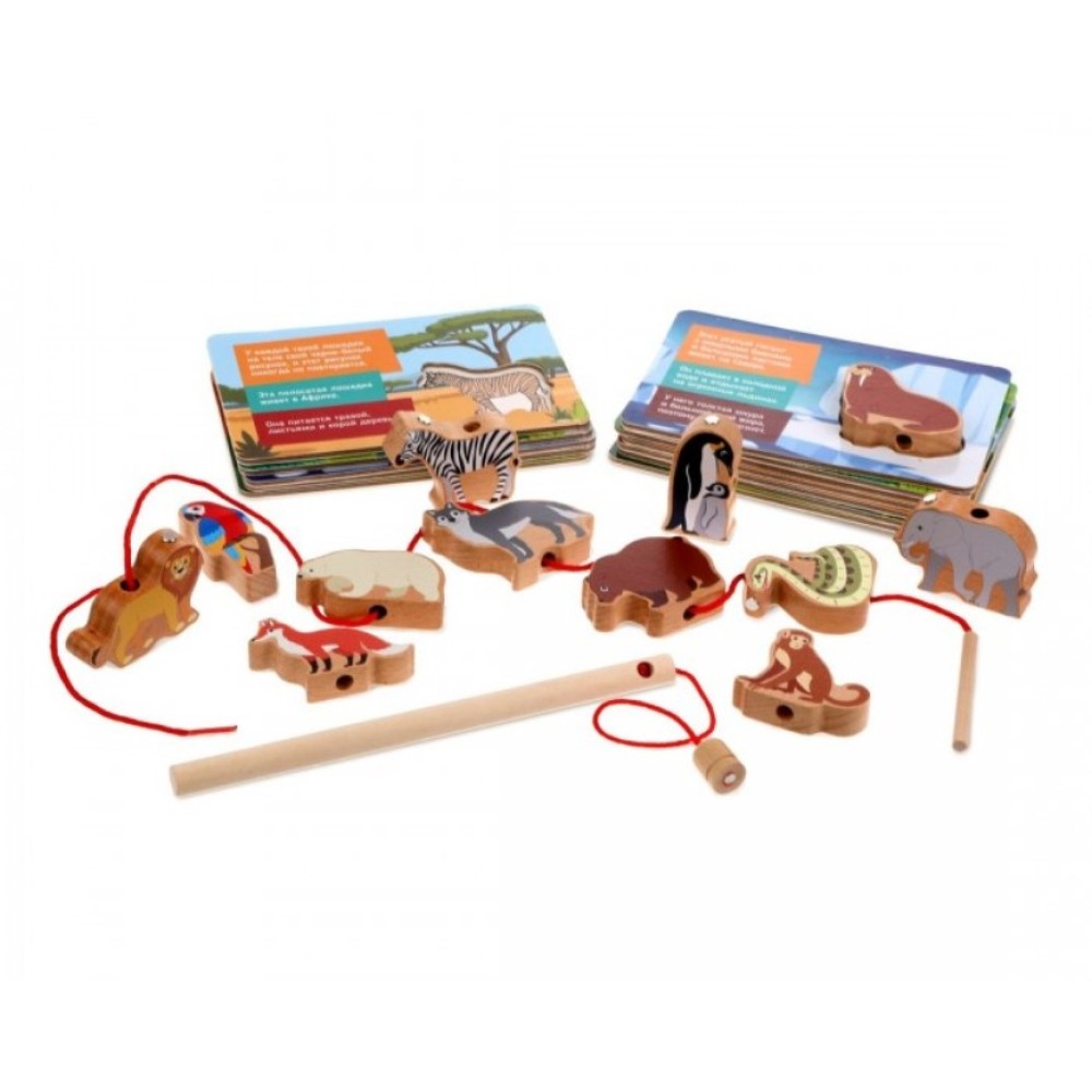MAPACHA. 76843 Развивающая игра 4в1 "Мир животных" (шнуровка, вкладыш, рыбалка, обучающие карточки)