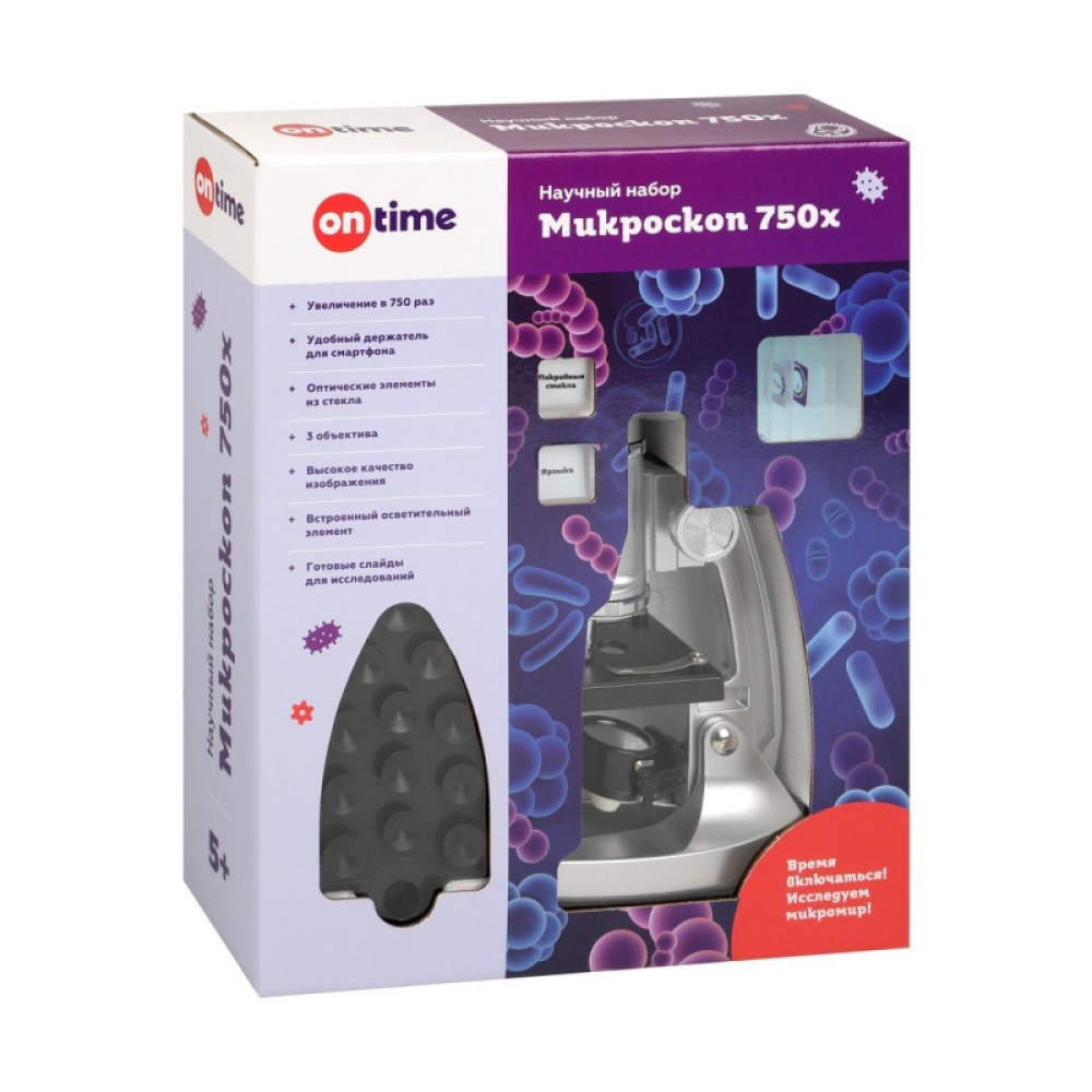 OnTime. Микроскоп, 750х, 3 объектива, держатель для смартфона, аксессуары арт.45045