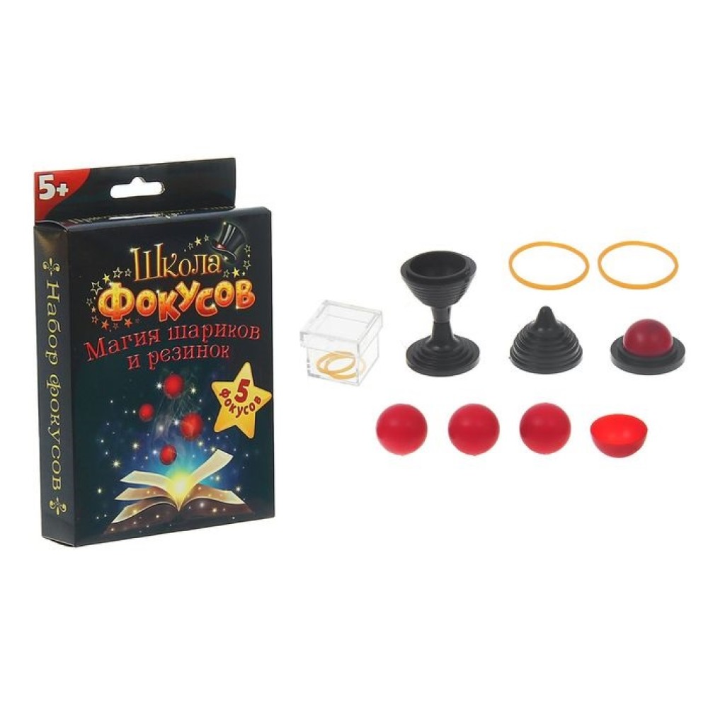 Школа фокусов. 1121586 Набор фокусника "Магия шариков и резинок" 5 фокусов
