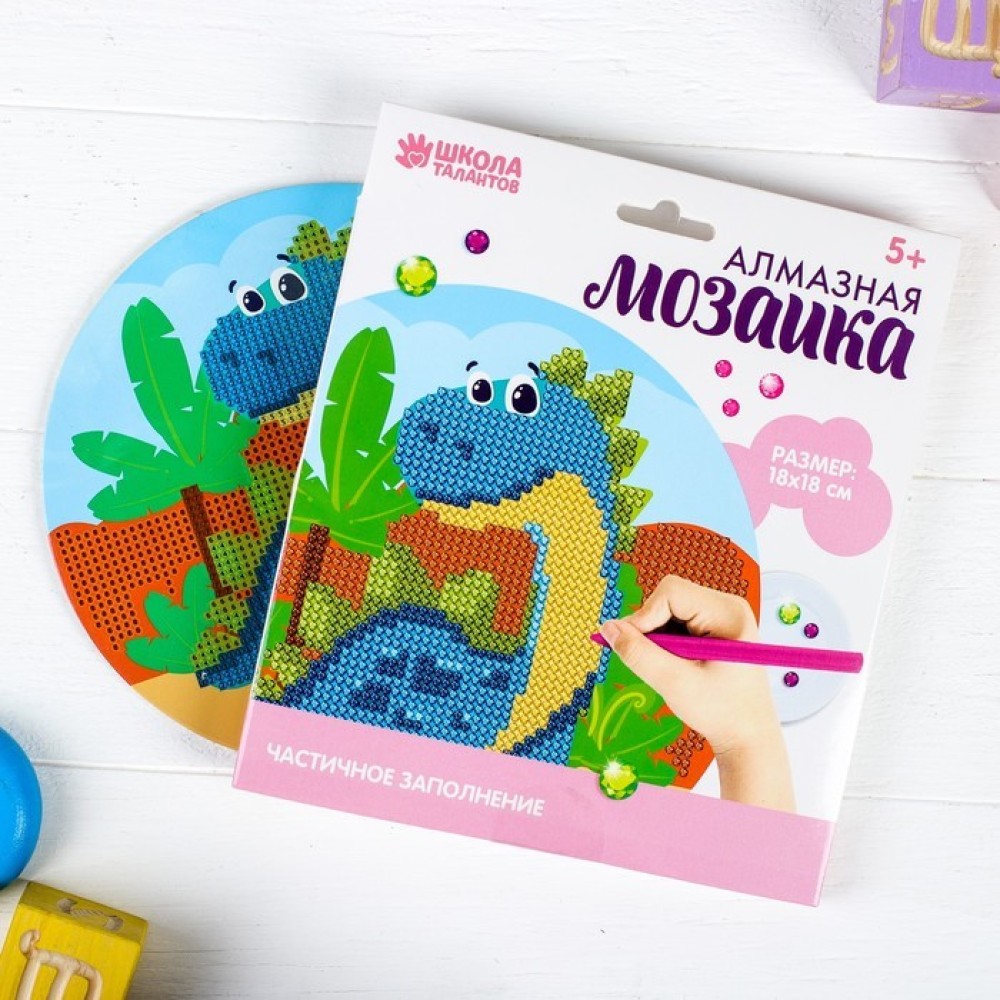 Школа талантов. Алмазная мозаика для детей 18х18 см арт.3659315 "Динозавр" стерж, клеев подушечка