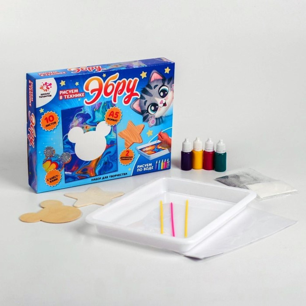Школа талантов. Набор для творчества Рисуем в технике Эбру "Кошечка" арт.4606772