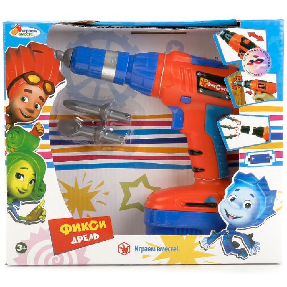 Играем вместе. Дрель "Фиксики" на бат. озвуч., сменные насадки в русс. кор. арт.B256051-R