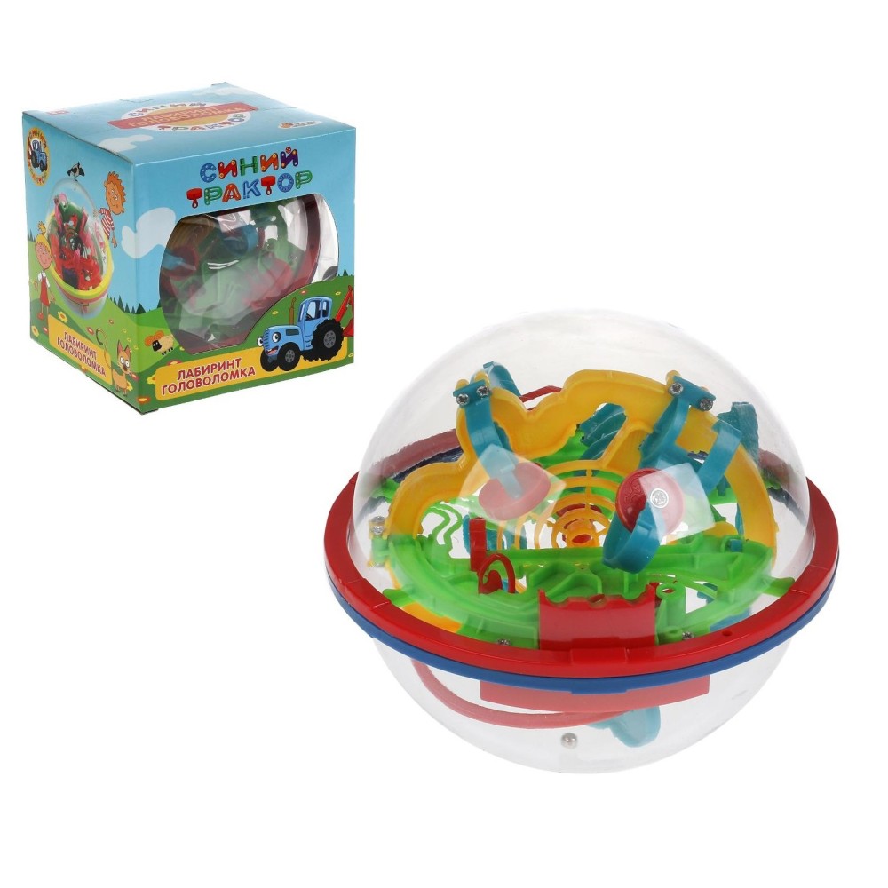 Играем вместе. Лабиринт-головоломка шар "Синий трактор" 12х12*х2 см арт.1604K1267-R