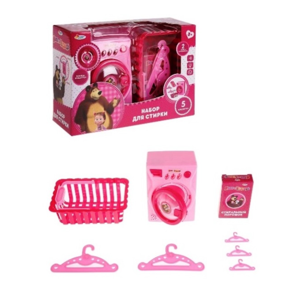 Играем вместе. Набор для стирки "Маша и Медведь" на бат, свет,звук. арт.B1120032-R
