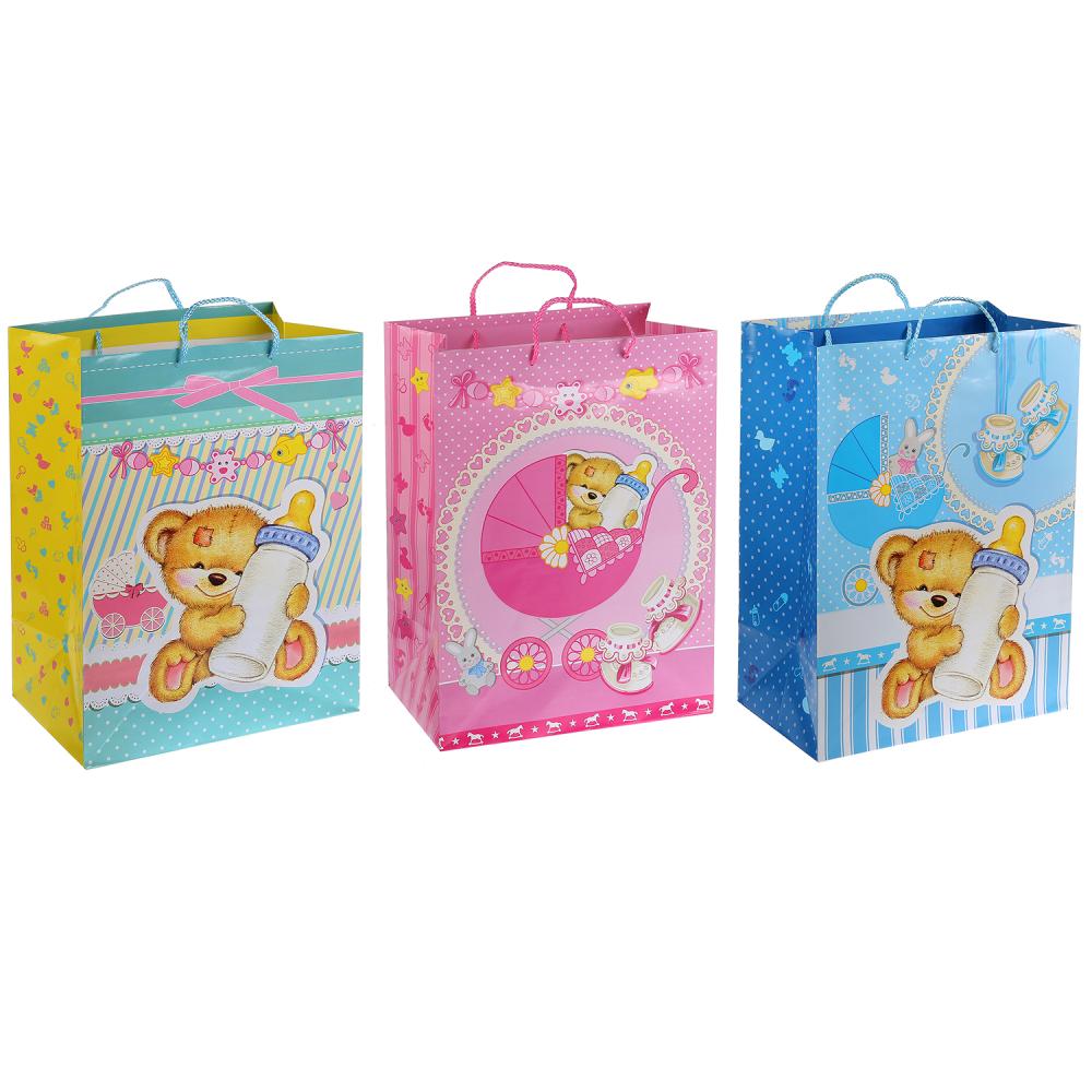 Играем вместе. Пакет подарочный "Для новорожденных" 33х46х20 см, глянцевый арт.CLRBG-INF-03
