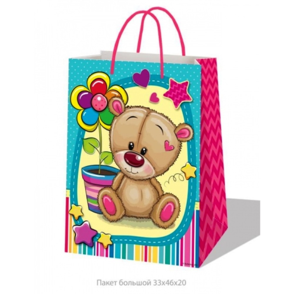 Играем вместе. Пакет подарочный "Мишка" 33х46х20см, глянцевый арт.PBL74MM