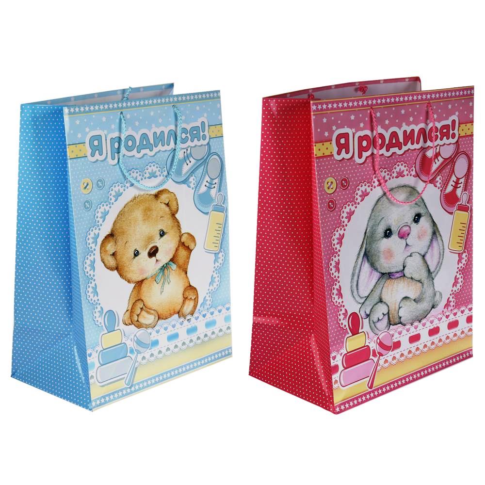 Играем вместе. Пакет подарочный "Я родился!" для новорожденных глян-вый 33х46х20см арт.CLRBG-INF2-03