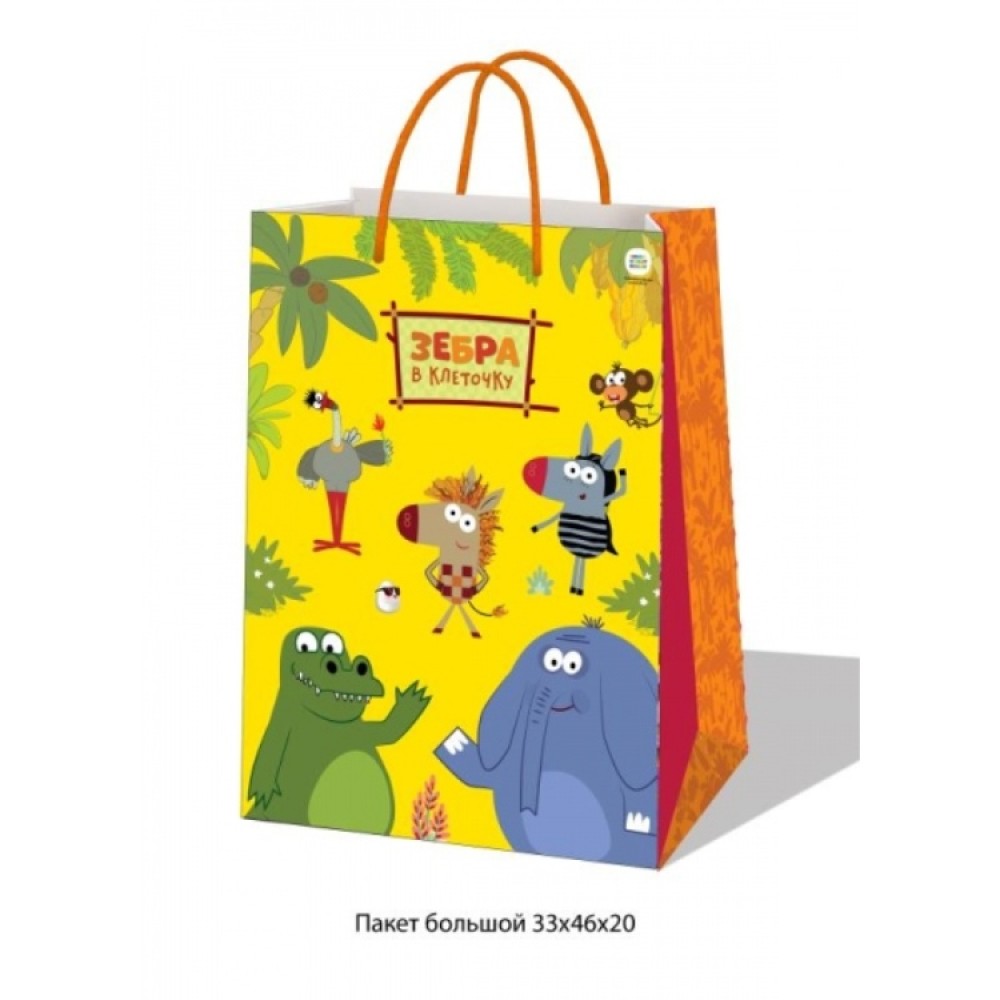 Играем вместе. Пакет подарочный "Зебра в клеточку" 33*46*20см, глянцевый арт.PBL01ZK