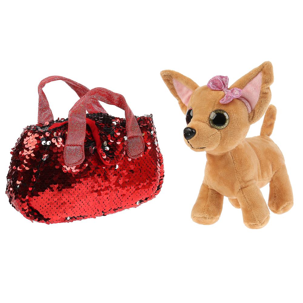 Мой питомец. Мягкая игрушка Собачка 15см в красной сумочке из пайеток в пак. арт.CT-AD191170-RED