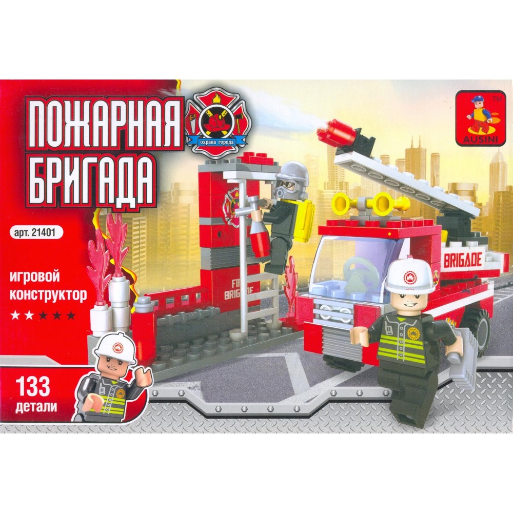 Конструктор "Пожарная бригада". Пожарная машина, 133 детали, 22.3x4.8x15.3см арт.21401