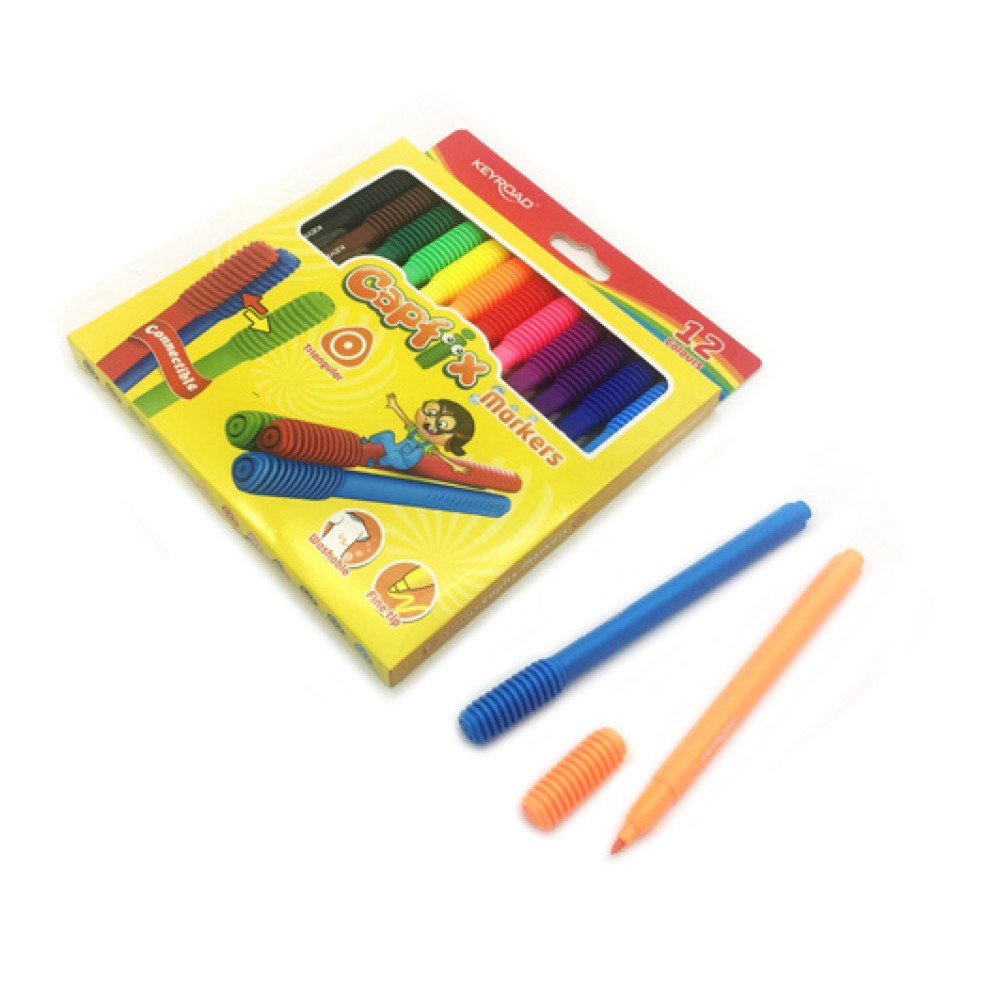 Intelligent. Фломастеры 12 цв. Keyroad колпачок-конструктор, смываемые, арт.KR971769