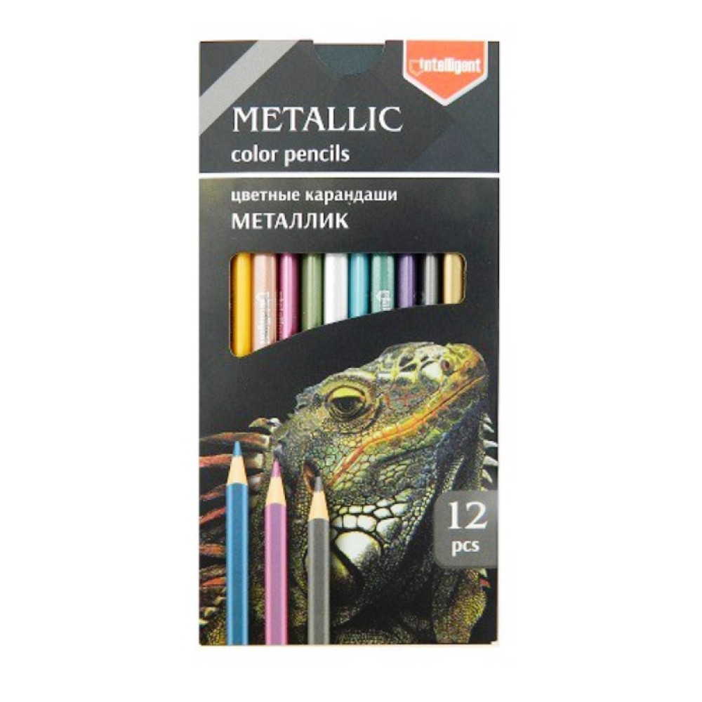 Intelligent. Карандаши 12 цв. "Металлик" трехгранные, деревянные, заточенные, в кор арт.CD-7001