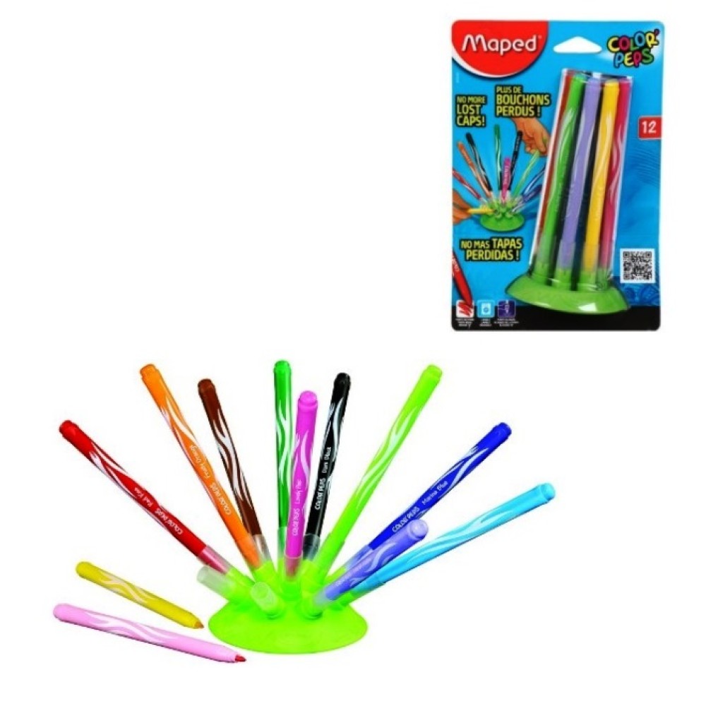 Maped. Фломастеры "Jungle Innovation" смываемые с колпачками на подставке (12 цв) арт.845445