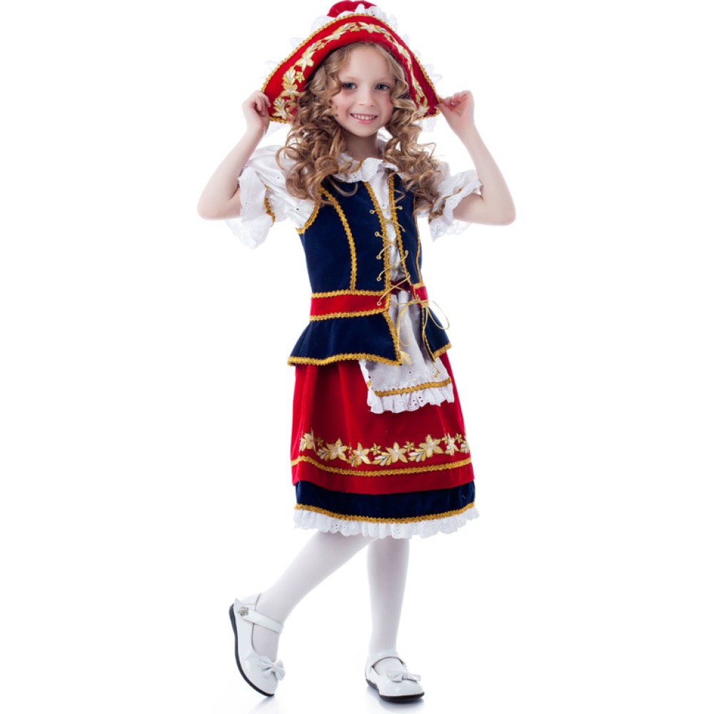 Карнавальный костюм "Красная Шапочка" (блузка, жилет, юбка с фартуком, шапочка) арт.945 р-р.32