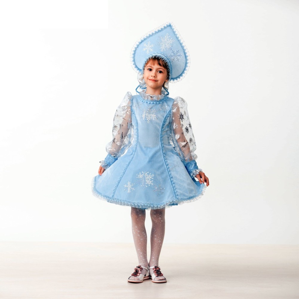 Карнавальный костюм "Снегурочка велюр голуб. " ( платье, подъюбник, Кокошник.) р.30 арт.5234