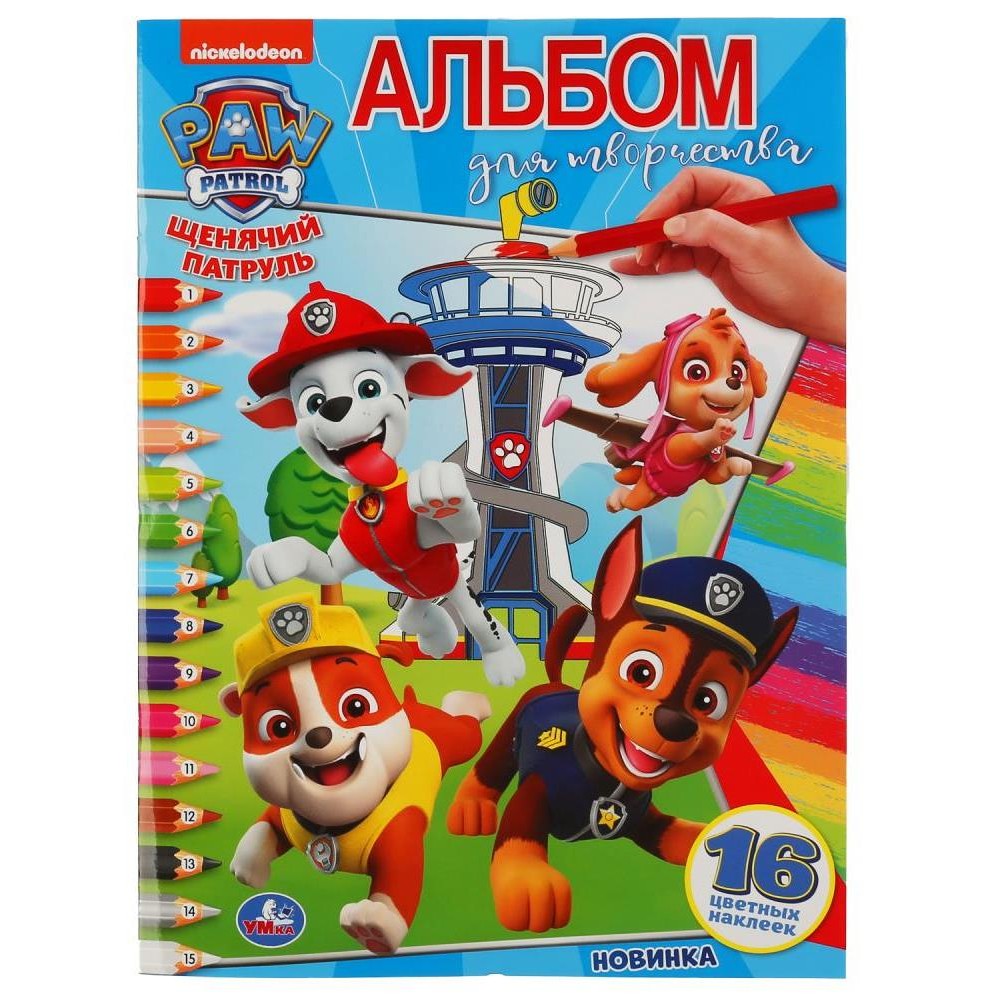 Умка. Альбом для творчества "Щенячий патруль" (раскраска по номерам с наклейками)