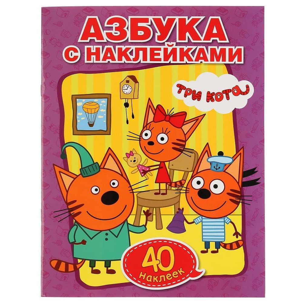 Умка. Азбука с наклейками "Три кота" (обучающая раскраска) +40 наклеек