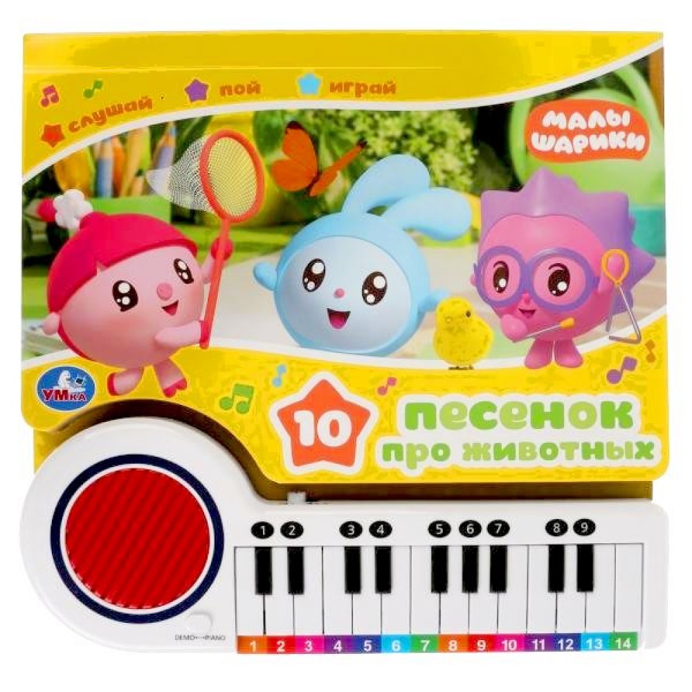 Умка. Книга-пианино "Малышарики 10 песенок про животных" с 23 клавишами и песенками