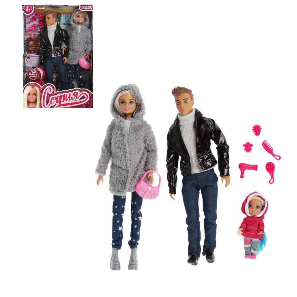 Карапуз. Кукла "София и Алекс" 29 см с дочкой,с акс,руки,ноги сгиб, арт.66502-21-SA-BB