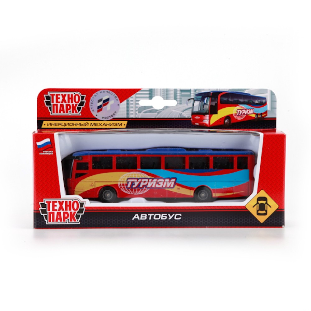 Технопарк. Автобус арт.SB-16-05 рейсовый "Туризм" металл. инерц. 15см,открыв.двери