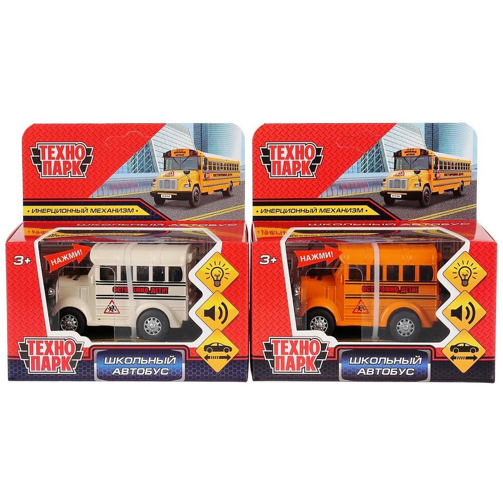 Технопарк. Автобус Школьный арт.1405989-R 8см, свет+звук, инерц., в кор.