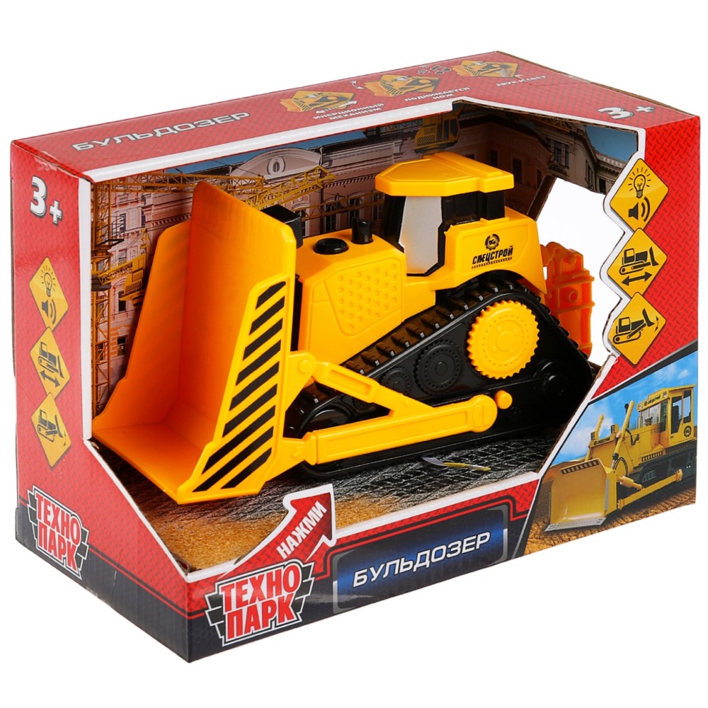 Технопарк."Бульдозер" арт.1811A048-R 18см,свет,звук, пластик, подвиж. детали, инерция в кор.