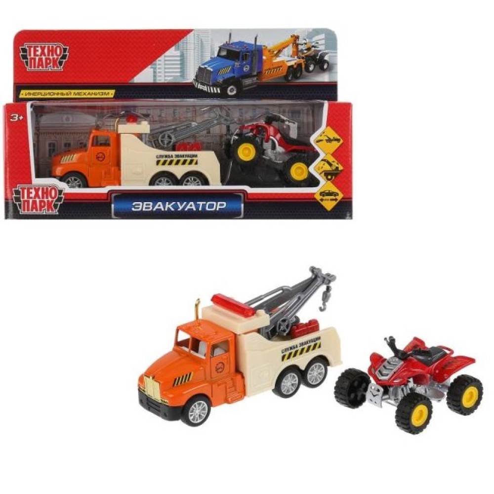 Технопарк. Эвакуатор с квадроциклом арт.1009-EVO2-R длина 20 см, подв элем, инерц.