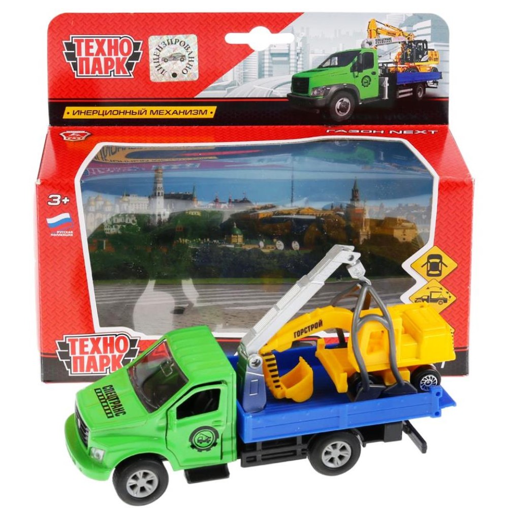 Технопарк."Газ Газон Next." Эвакуатор арт.SB-18-23-G+EL-WB 14,5см + экскаватор-погрузчик 7,5см