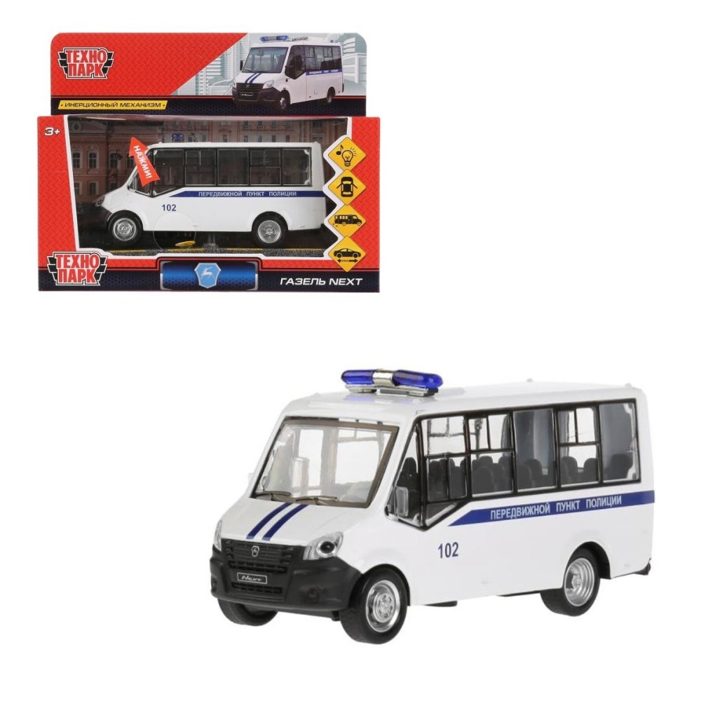 Технопарк."Газель Next Citiline" Полиция 14 см, свет-звук двер, инер, арт.NEXTCITI-15SL-POL