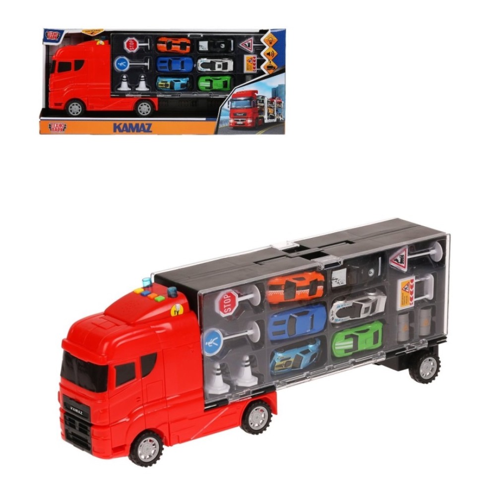 Технопарк. Машина "Kamaz Тягач" 47 см, 4 кноп, набор машин, свет-звук арт.KAMSET-47PL-RD