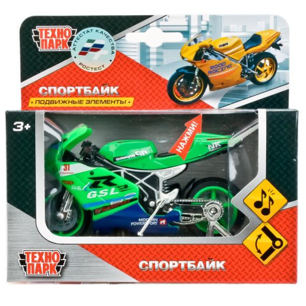 Технопарк. Мотоцикл "Суперспорт" металл. 11,5см,озвуч.,подвиж. элементы арт.532116-R