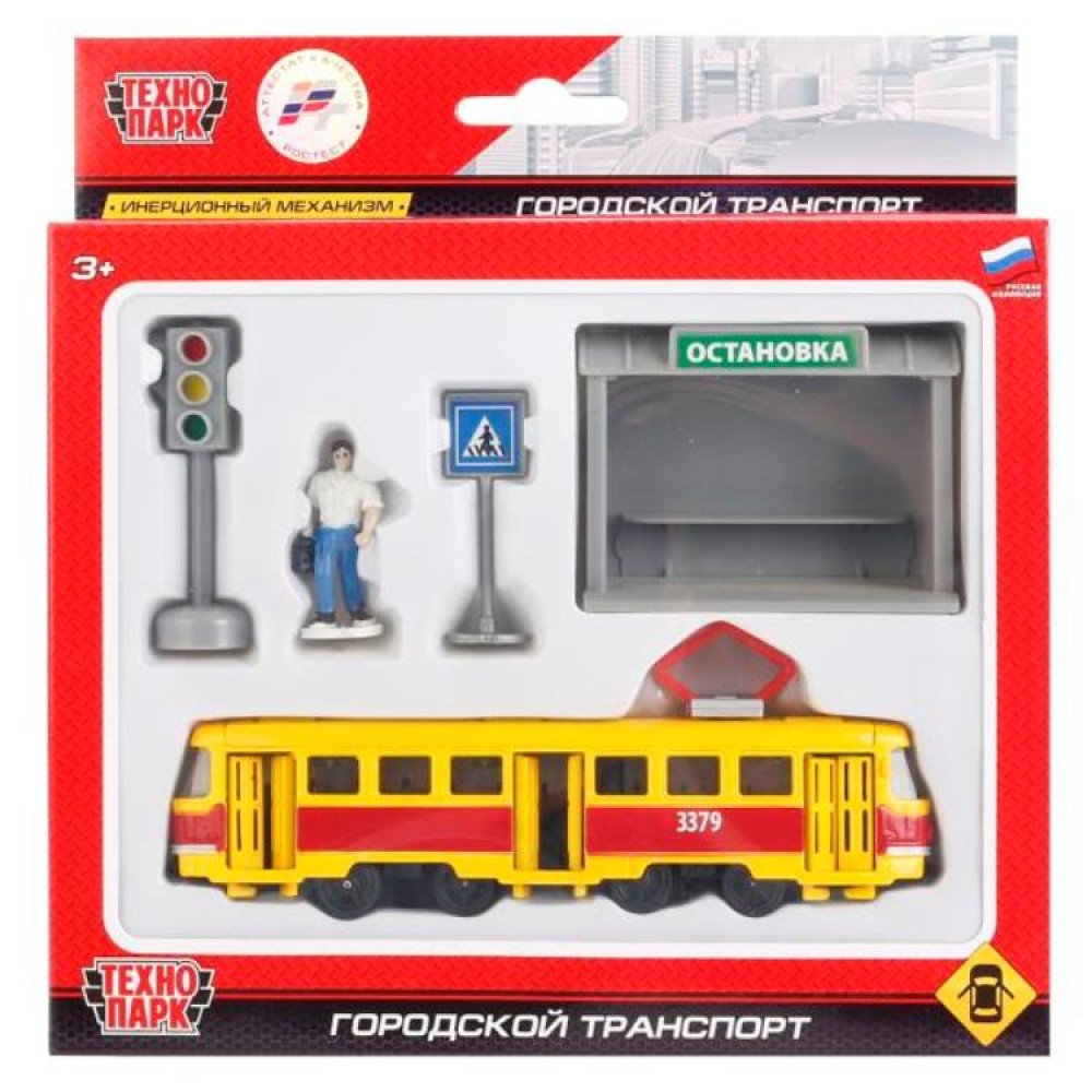 Технопарк. Набор "Городской транспорт" 16,5 см (трамвай с остановкой и аксесс) арт.SB-17-14-A-WB
