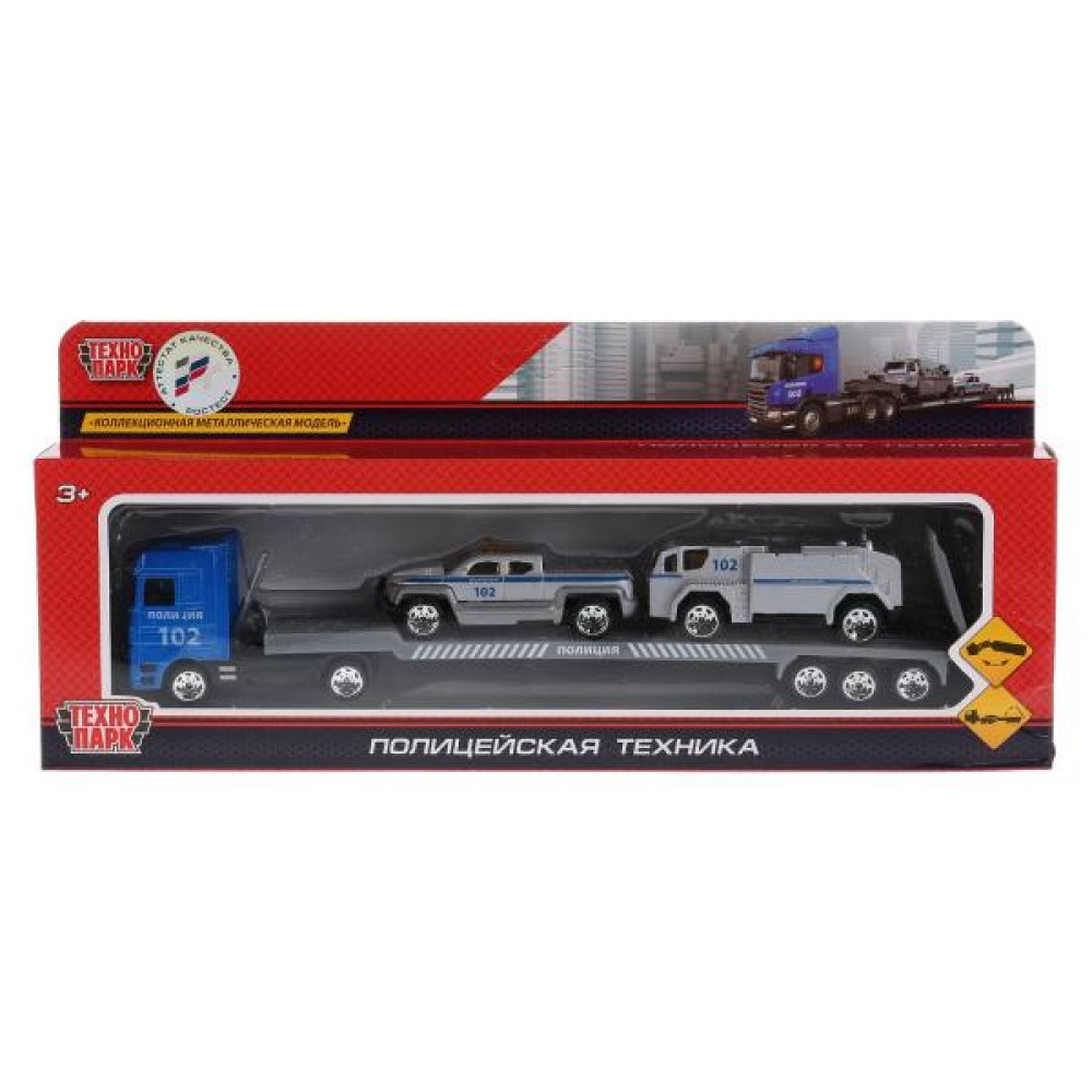 Технопарк. Набор из металл машин "Автовоз полиция"с машинками, длина 24см, арт.1045B-R