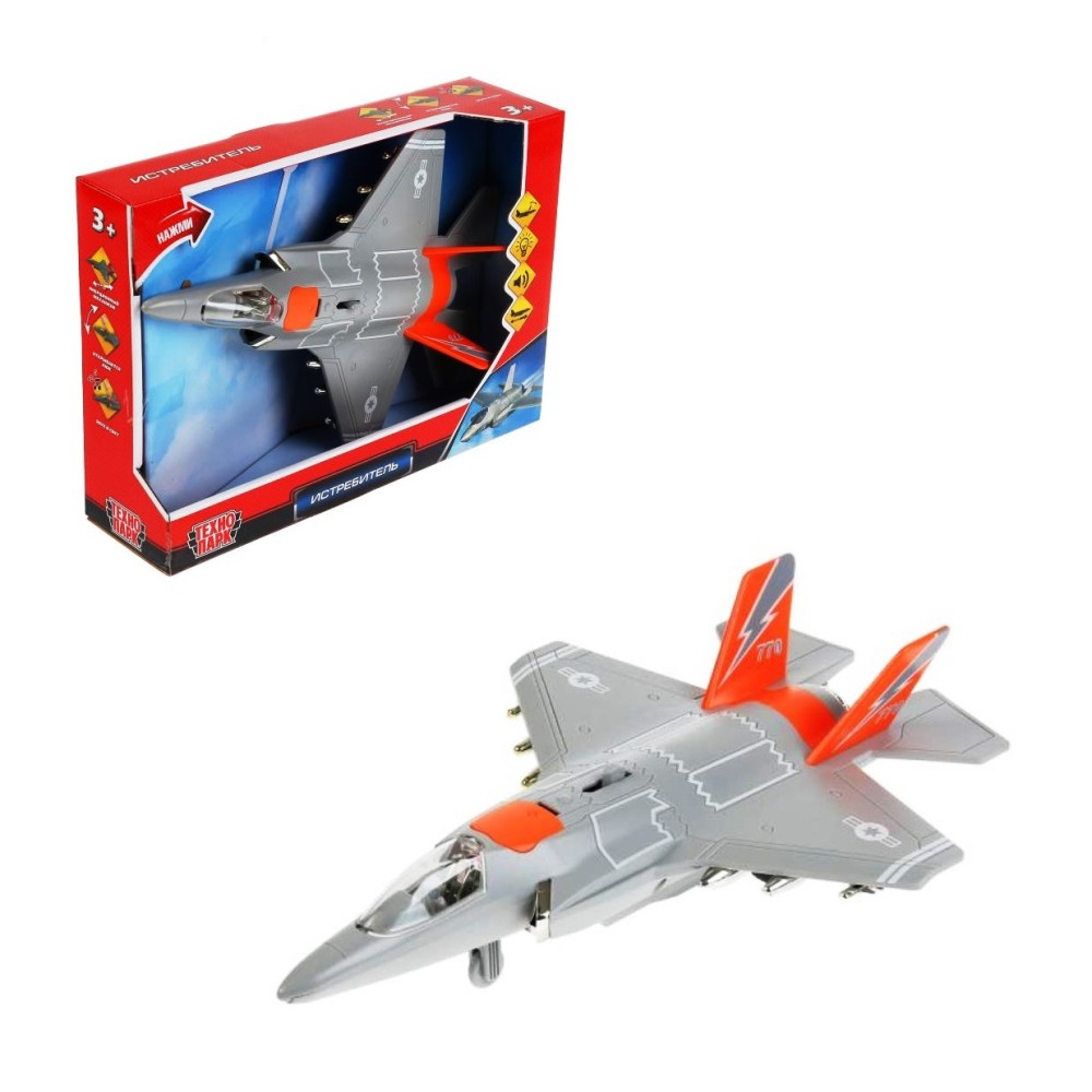 Технопарк. Самолет "Истребитель" 32см, свет+звук пластик, инерц., открыв.люк арт.WY770A-R